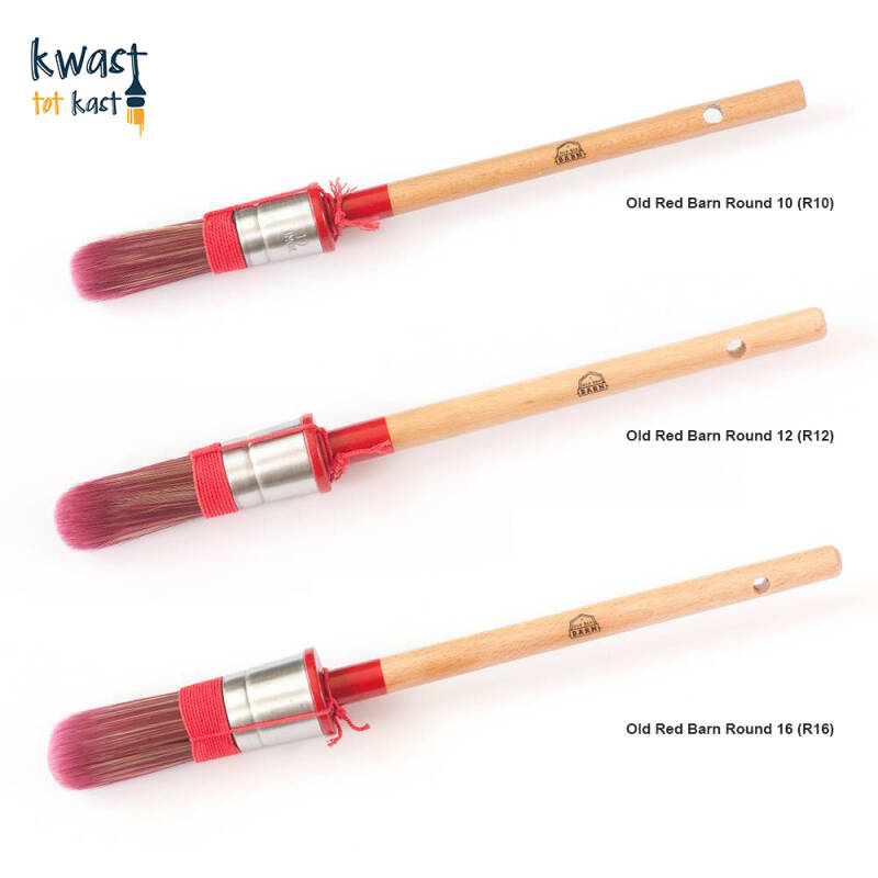 Zoek je een fijne kwast om hoekjes, groeven en gaatjes te verven? De Old Red Barn ronde kwasten zijn hier perfect voor! De ronde vorm van de borstelkop zorgt ervoor dat het verdelen van de verf gemakkelijker gaat. Deze kwast heeft een lange steel wat er voor zorgt dat je meer evenwicht hebt tijdens het verven; het verminderd de polsvermoeidheid! De ronde kwasten van Old Red Barn zijn perfect voor tafel- en stoelpoten. De R16 is de grootste ronde kwast van Old Red Barn en de R10 en R12 zijn iets kleiner.