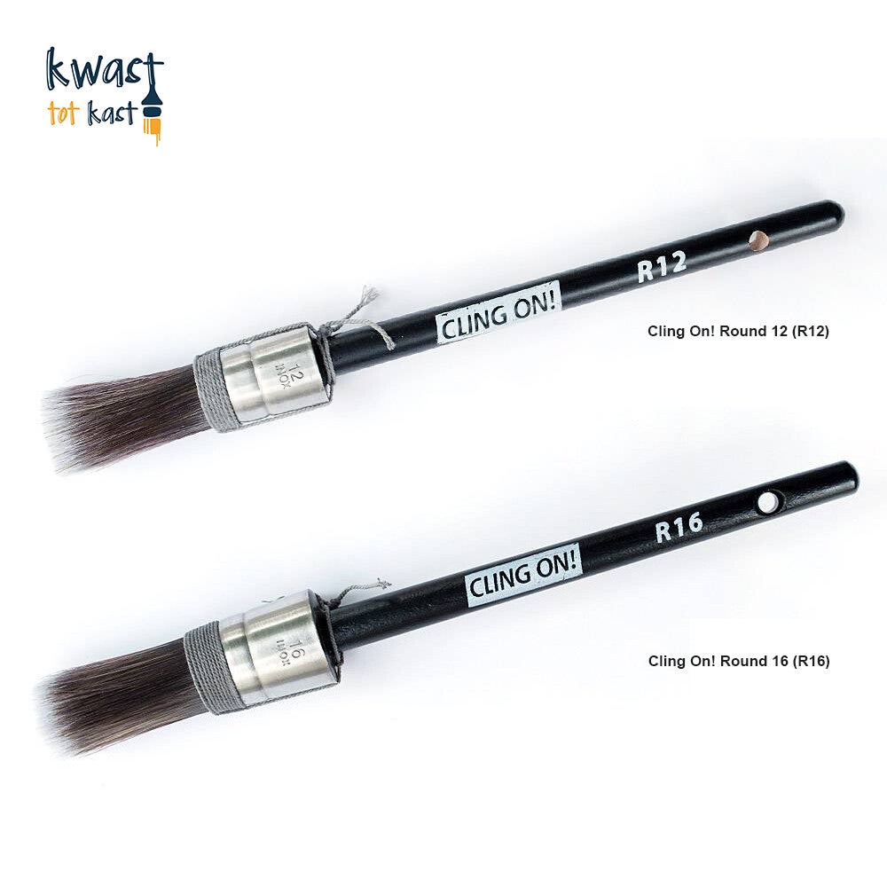 De Cling On! ronde kwast (R14) is een fijne kwast om te gebruiken op ronde spijlen van bijvoorbeeld commodes, tafelpoten of stoelen. De R14 is de middelste kwast en perfect om te gebruiken voor standaard werk.