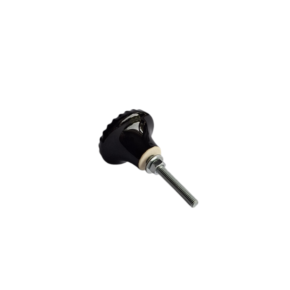 Dit porseleinen zwarte knopje met een streep motief geeft een luxe uitstraling aan je meubel. Het kastknopje is gemakkelijk te bevestigen op een lade of deur van een meubel.