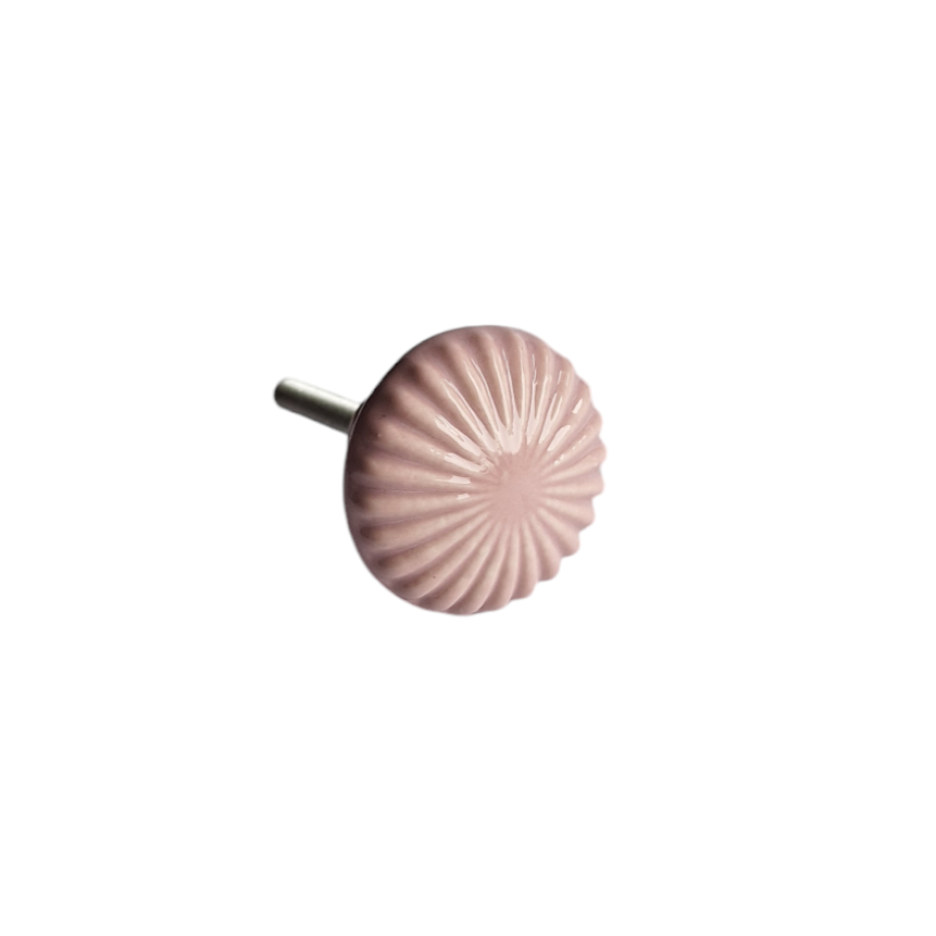 Dit porseleinen roze knopje met een streep motief geeft een zachte uitstraling aan je meubel. Het kastknopje is gemakkelijk te bevestigen op een lade of deur van een meubel.